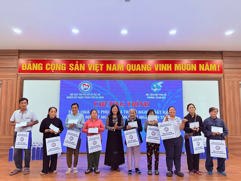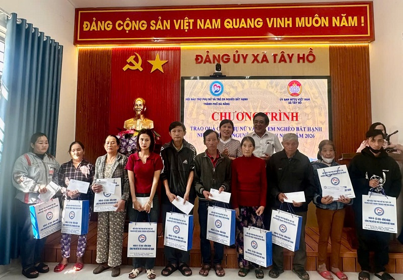 Từ ngày 21 tháng 01 đến ngày 5 tháng 02 năm 2026, Hội Bảo trợ Phụ nữ và Trẻ em nghèo bất hạnh thành phố Đà Nẵng đã phối hợp với các nhà tài trợ, các Phường: Hải Châu; Thanh Khê; Sơn Trà; Liên Chiểu; Xã: Tây Hồ; Hòa Tiến; Lãnh Ngọc; Trà Tân; Thăng Phú; Sông Vàng; Tây Giang; Nam Giang;Quế Sơn; Nông Sơn; Thượng Đức; Làng Hy vọng; Thanh Niên Xung Phong…v.v.. tổ chức trao 1.010 suất quà Tết cho phụ nữ và trẻ em nghèo, trên các xã, phường thành phố Đà Nẵng, mỗi suất quà trị giá 600.000 đồng, tổng số tiền 606.000.000 đồng.